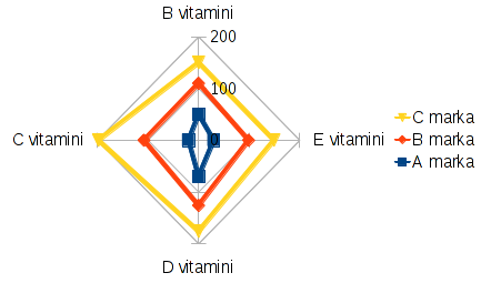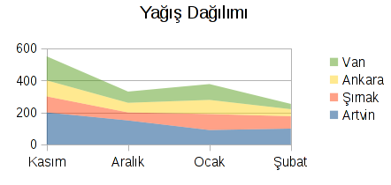 Calc'ta sayısal bir veri bloğu farklı türde grafiklerle gösterilebilir, özelleştirilebilir.