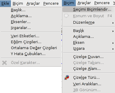 Biçim menüsü altındaki seçenekler;