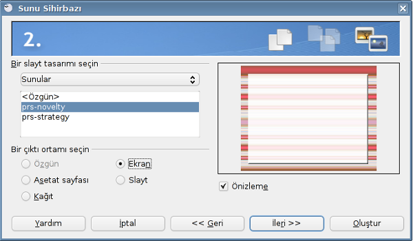 Impress (Sunum) uygulaması açıldığında sunu sihirbazı ile karşılaşılır.