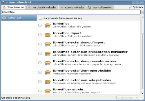 Not: LibreOffice uygulaması için sistemde Java'nın kurulu olması gerekir.