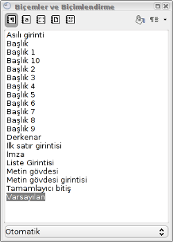 LibreOffice, şu stillerin kullanımına izin vermektedir: