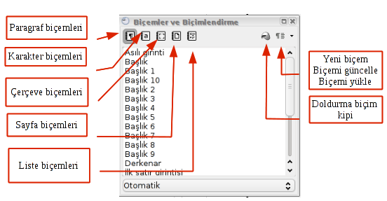 LibreOffice'te 5 farklı biçem (stil) kategorisi vardır: