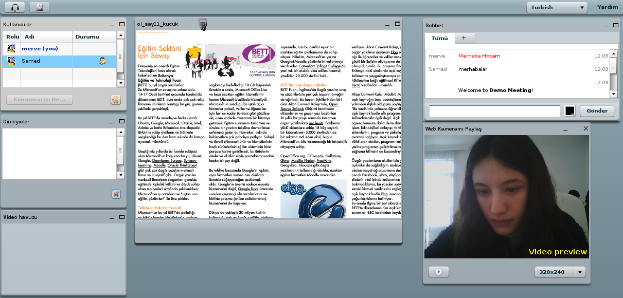 WebHuddle; Linux, Windows, MacOSX üzerinde çalışabilen açık kaynak kodlu web konferans uygulamasıdır.
