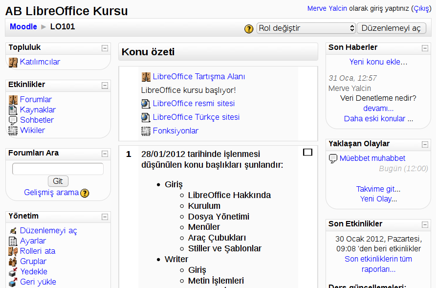 Moodle (Modular Object Oriented Dynamic Learning Environment), açık kaynak kodlu öğrenme yönetim sistemidir.