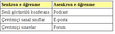 E-öğrenme zaman bakımından 2 farklı türde ele alınabilir ve bu iki tür arasında kullanılan teknolojiler de farklılık gösterebilir.